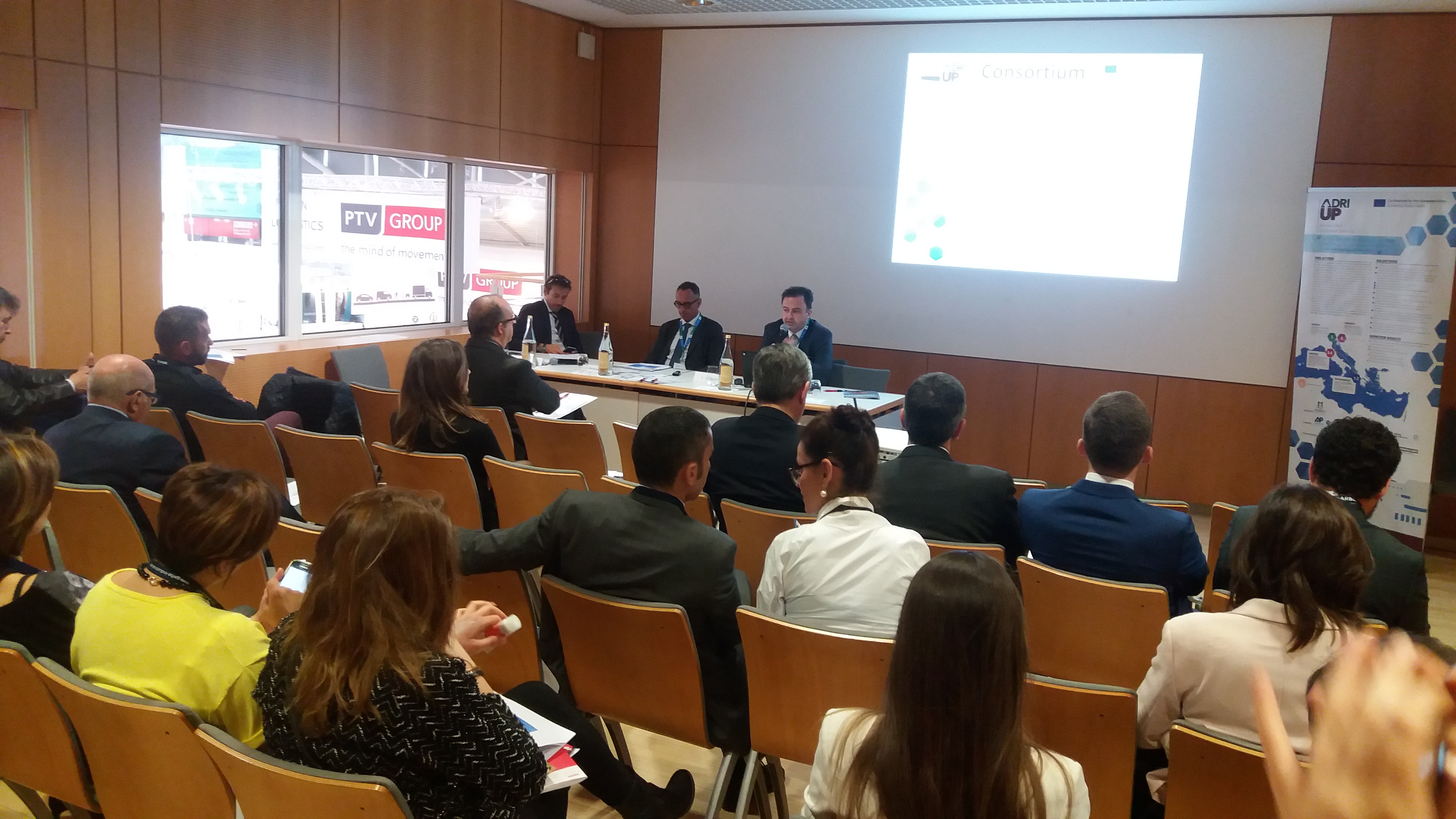 Rome, May 15th, 2017 – On Wednesday, 10th May 2017, in the framework of Transport Logistic 2017 in Munich, RAM hosted the “Adriatic-Ionian Logistic Corridor” Conference aimed at presenting to an international audience of private and public stakeholders, the CEF-cofinanced ADRI-UP Project and its contribution towards the improvement of Motorways of the Sea services along the Adriatic-Ionian corridor in the eastern Mediterranean basin.