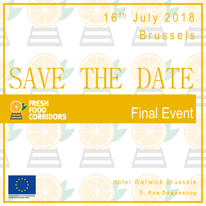 Lo scorso 16 luglio, si è svolto a Bruxelles l'evento finale del Progetto europeo Fresh Food Corridors. Il meeting, organizzato da RAM, leader dell'attività 4 "Disseminazione" ha avuto lo scopo di presentare le attività svolte nel corso dell'iniziativa e i relativi principali risultati e benefit. All'evento, che ha visto la presenza di molteplici stakeholders europei, hanno preso parte tra l'altro, Jaroslaw Kotowski (INEA Senior Project Manager), Evert Mink (INEA Technical advisor for MoS) e Anna Livieratou (INEA Senior Project Manager). Video
